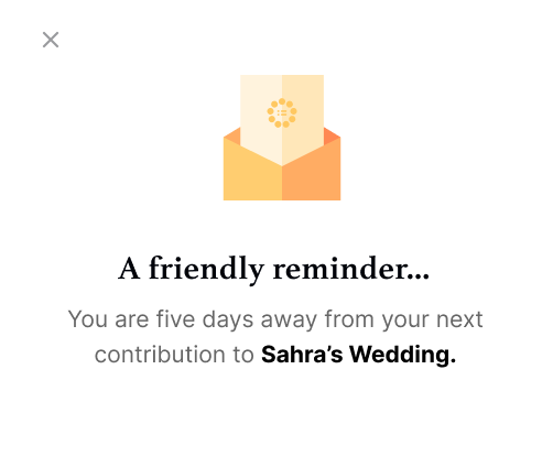 Contributions are collected from each member of the group automatically with secure payments according to the schedule you set. We’ll even remind you before your payment is due!