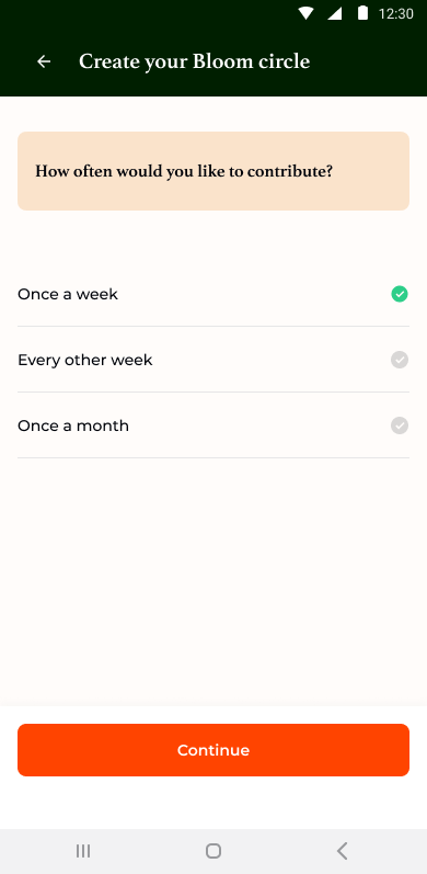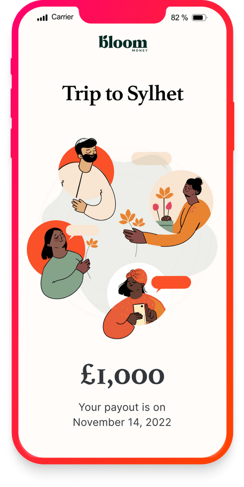 Invite up to 10 contributors to join your Bloom circle and choose your frequency of pay in.